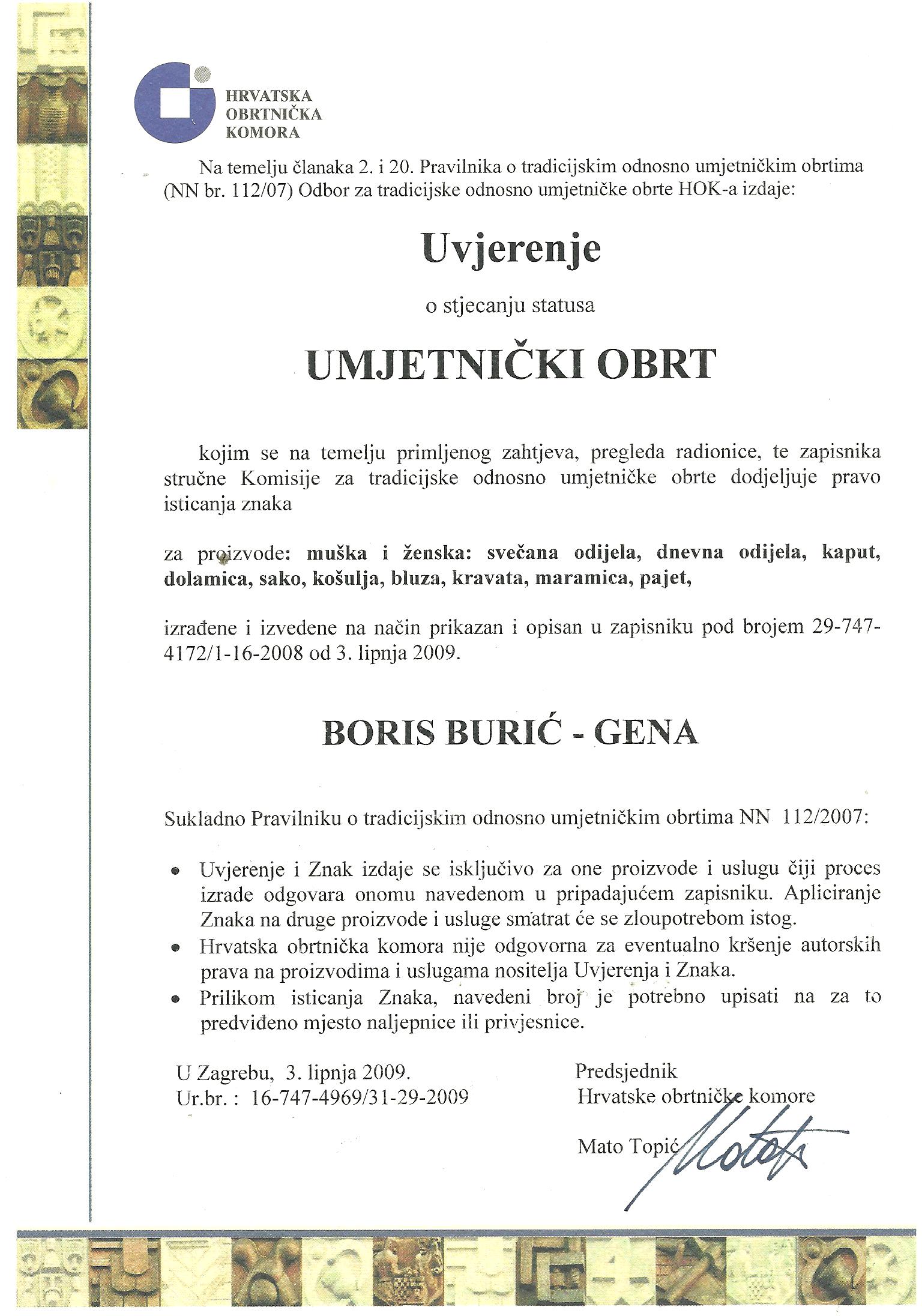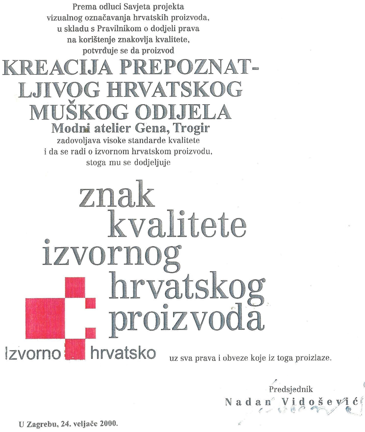 Za razliku od serijskih, konfekcijskih odijela, u Gena odijelu otisnuta je njegova prepoznatljiva osobnost i dodiri vještih ruku.